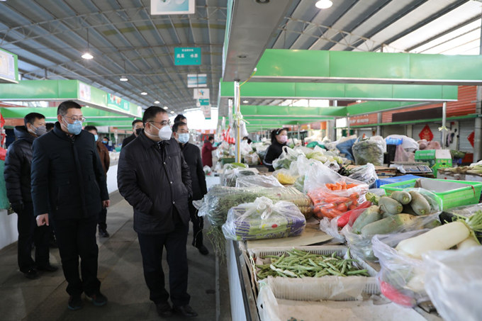 集團(tuán)公司領(lǐng)導(dǎo)到巨龍農(nóng)貿(mào)市場(chǎng)防疫一線視察指導(dǎo)工作