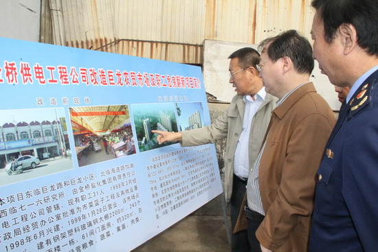 在巨龍農貿市場,范總向秦國丞副秘長簡要匯報了巨龍農貿市場的基本情況以及改造方案,通過改造實現市場空間布局合理化、設施建設標準化、長效菅理規(guī)范化的總體目標。秦國丞副秘書長對公司巨龍農貿市場的改造方案給予較高評價,充分肯定了公司在創(chuàng)建國家文明衛(wèi)生城市、加強我市菜藍子工程建設、提升群眾幸福指數方面作出的貢獻;同時,要求我公司繼續(xù)深入調研,盡快制定具體實施方案,報政府部門審批;并指示隨行的有關部門人員,要給予全力配合,對改善民生工程開綠燈。(司宣 盧正清)