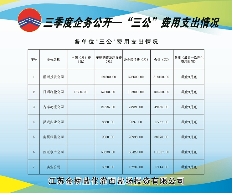 三季度期間,我公司銷售原鹽共計(jì)154539.6噸,資金回籠30448983.8元。