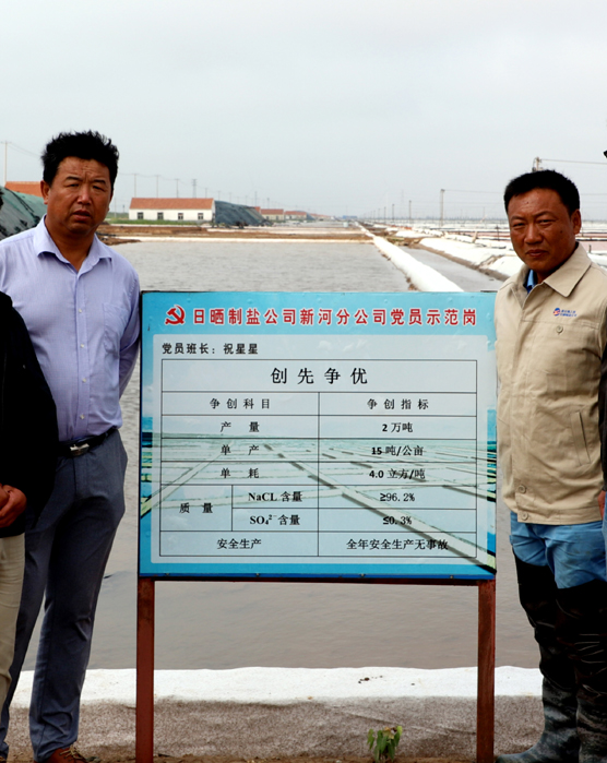 2016 年底,由于祝星星的出色表現(xiàn),在全公司31個班組長中,他被公司選中擔(dān)任原料鹽基地的班長。面對新的班組、新的戰(zhàn)場,他帶領(lǐng)班組全體員工,發(fā)揚不怕吃苦、不怕累、大愛擔(dān)當(dāng)、大志拼搏的精神,在短短一年的時間里,使原料海水鹽結(jié)晶區(qū)灘地面貌就煥然一新,不管是生產(chǎn)管理還是在灘場文明管理上均走在公司的前列。2018 年,為公司創(chuàng)建一流的海水原料鹽基地,他帶領(lǐng)著全體班組成員積極完善“傳統(tǒng)海鹽+新式工藝”的生產(chǎn)模式,大力實施原鹽質(zhì)量標(biāo)準(zhǔn)化建設(shè),強化生產(chǎn)管理、灘場文明等環(huán)節(jié)的執(zhí)行力度,向著生產(chǎn)優(yōu)質(zhì)原料鹽1.5 萬噸的目標(biāo)邁開了新的步伐。