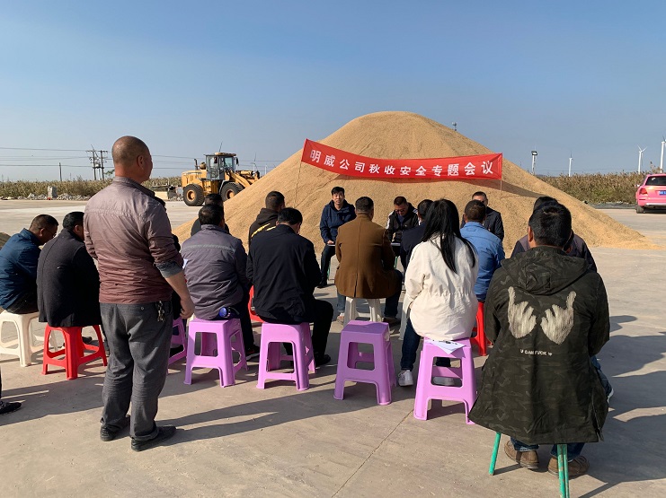 11月8日,明威公司在二灣分公司稻谷曬場,召開秋收安全生產(chǎn)工作專題會議。分析當(dāng)前安全生產(chǎn)工作形勢,部署秋收期間安全生產(chǎn)工作。