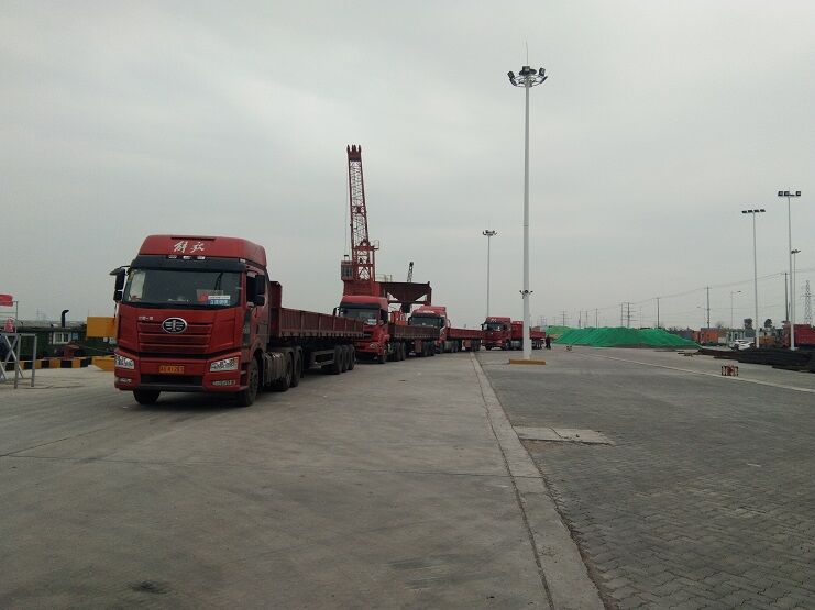 隨著江蘇省境內(nèi)復(fù)產(chǎn)復(fù)工的開始,省內(nèi)道路交通逐漸恢復(fù),宵洋物流公司抓住戰(zhàn)機,積極發(fā)展客戶。裝載著彈簧扁鋼特種鋼材的車輛絡(luò)繹不絕地駛?cè)氪a頭,直接裝船。這將大幅度降低碼頭倉儲壓力,提高碼頭的運轉(zhuǎn)能力。這也是碼頭首次鋼材進行船運,打破以往車輛運送貨物的局限性,大大增加碼頭的吞吐量。