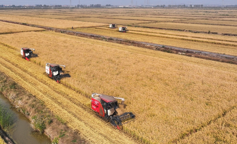 近日,青口投資公司萬畝耐鹽堿水稻收割正如火如荼展開,大地上洋溢著豐收的喜悅,頻頻傳來喜訊。今年秋糧豐收的背后藏著三個重要的“密碼”。