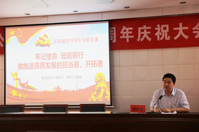 為了慶祝中國共產黨建黨99周年,繼承和發(fā)揚黨的光榮傳統(tǒng),彰顯基層黨組織的戰(zhàn)斗堡壘作用和黨員先鋒模范作用,6月28日上午,青口投資公司隆重召開紀念建黨99周年慶祝大會暨“七一”表彰大會。會議由黨委副書記、工會主席梁永主持,全體領導班子成員、各單位黨政負責人、優(yōu)秀黨員代表、機關全體管理人員參加會議。