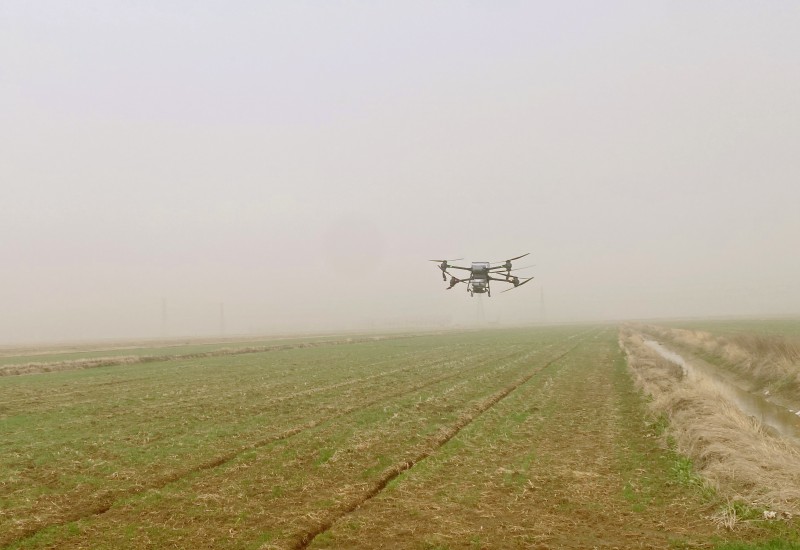 3月23日,大新農(nóng)場正在使用植保機開展小麥施肥作業(yè)。