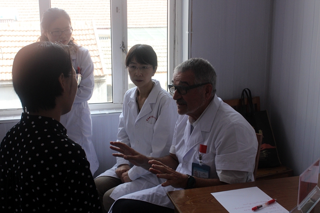 Henning Ritter為德國(guó)奧爾登堡大學(xué)附屬醫(yī)院乳腺外科教授。長(zhǎng)期從事婦科腫瘤、產(chǎn)科、乳腺腫瘤治療臨床研究, 2013年獲得歐洲外科協(xié)會(huì)腹腔鏡技能金獎(jiǎng)。在活動(dòng)現(xiàn)場(chǎng),Henning Ritter教授帶領(lǐng)市二院的專家,對(duì)前來就診的女工做了認(rèn)真細(xì)致的檢查診斷,有的女工拿著之前檢查的結(jié)果請(qǐng)教授診斷,專家們對(duì)她們提出的問題一一做了解答,并給予會(huì)診意見。貼心的服務(wù)讓女職工足不出戶就可以享受到國(guó)際醫(yī)學(xué)專家的診斷。