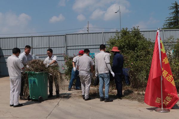 活動中,30余名黨員同志頂著烈日,他們不畏酷暑,揮汗如雨,有的在廠區(qū)的綠化帶里認(rèn)真清理雜草、樹枝和垃圾,有的負(fù)責(zé)運(yùn)送垃圾,到處都是熱火朝天的勞動景象。