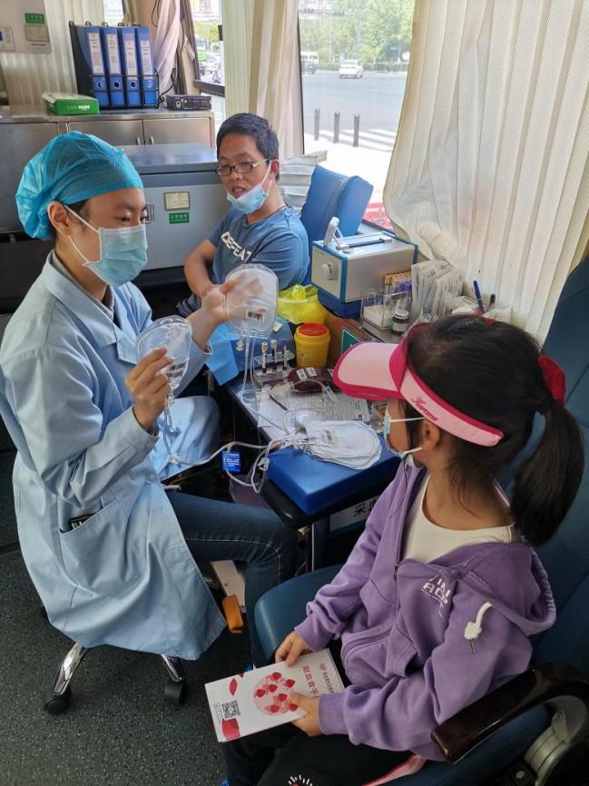 我的女兒很好奇,左瞅瞅右看看,我剛提醒她上面不能亂走,護士卻說,“沒關(guān)系,有什么不懂的可以問我?!?。于是,瞬間打開了她心中的“十萬個為什么”,她一會問問血液為什么是紅色的,一會問問這個設(shè)備是做什么的,后來問道小本子上那些字母干什么,為什么有的要畫一下?我們都給問蒙了,后來才想到她看過我十年前的獻血本,上面有血型勾選的;護士可能也是工作幾年的,不好意思的說,“我沒見過那樣的”。十幾分鐘的獻血很快就結(jié)束了,但是她們的對話仍在持續(xù),直到又有人上來了,才依依不舍的和護士姐姐再見,跟著我們一起離開。