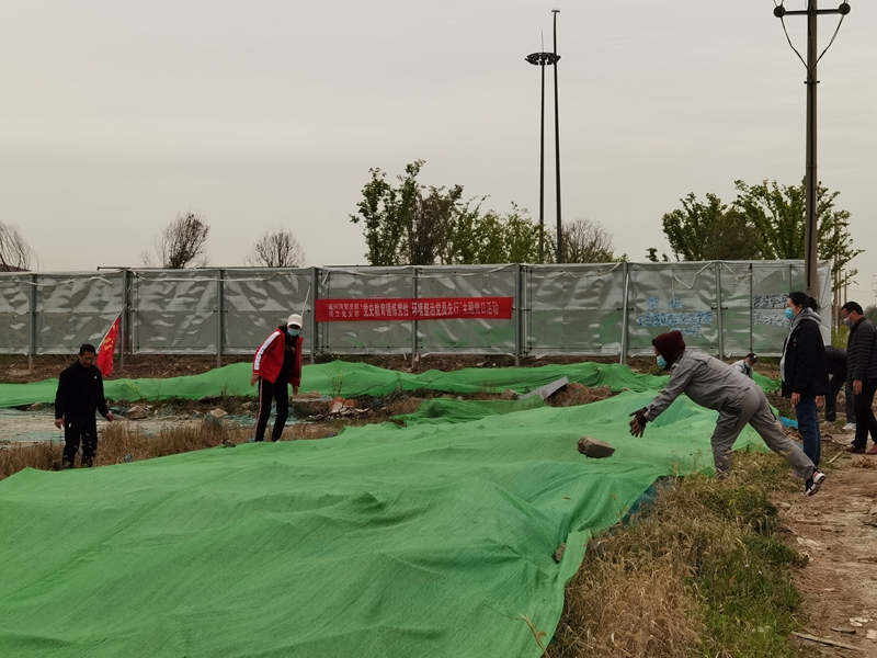 翔立分公司黨支部攜手海州灣公司黨支部對(duì)公司的車(chē)站小灘進(jìn)行環(huán)境整治,為裸露在外的土地進(jìn)行防塵網(wǎng)鋪設(shè)。