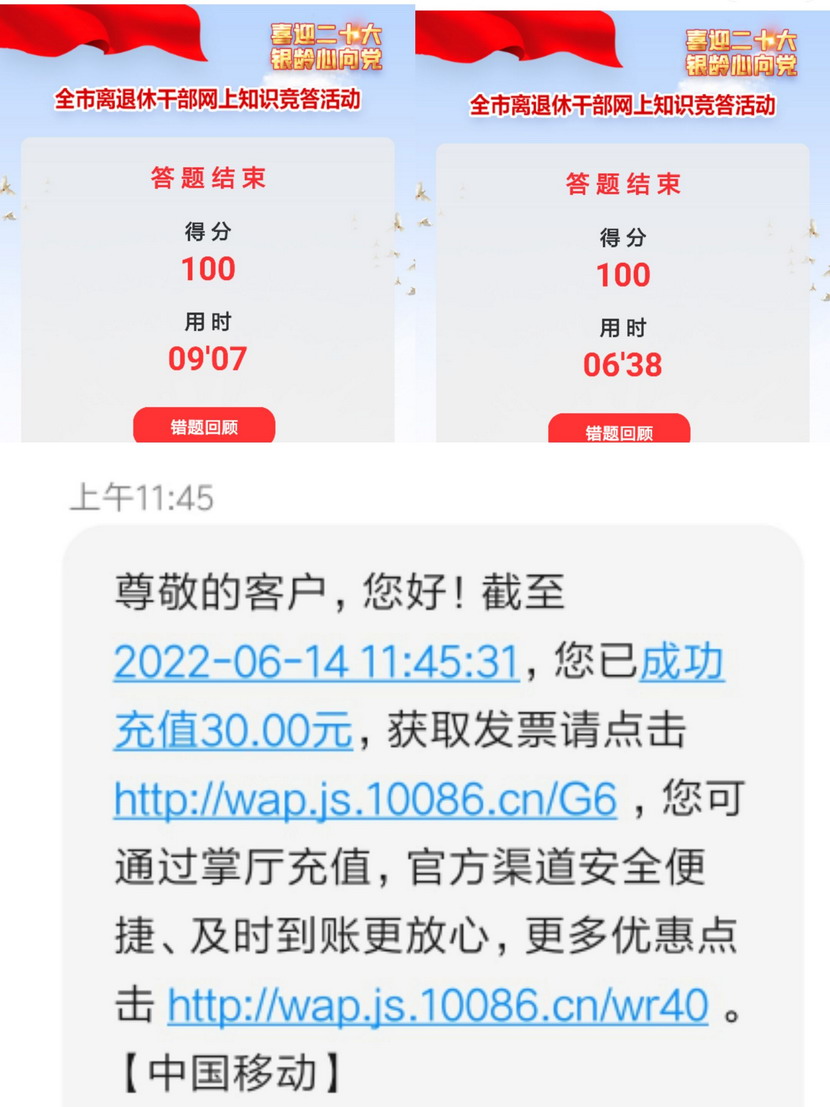 猴嘴辦事處對此次答題活動(dòng)高度重視,動(dòng)員猴嘴辦事處人員積極參與答題活動(dòng),并引導(dǎo)鼓勵(lì)離休老干部積極參加答題活動(dòng)。經(jīng)過七天的連續(xù)網(wǎng)上奮戰(zhàn)答題,獲獎(jiǎng)評選結(jié)果于613日揭曉,猴嘴辦事處張克娟同志喜進(jìn)第一周獲獎(jiǎng)人員名單,并且已收到了30元的話費(fèi)充值獎(jiǎng)勵(lì)。獲獎(jiǎng)本人表示,將把此次競答獎(jiǎng)勵(lì)轉(zhuǎn)化為學(xué)習(xí)的再生動(dòng)力,再接再厲,以學(xué)促行,推動(dòng)服務(wù)能力再提升。