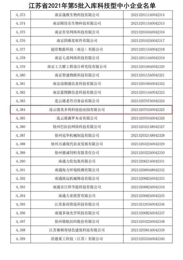 美多利入選2021年國(guó)家科技型中小企業(yè),入庫(kù)登記編號(hào)為2021320703A0042325。